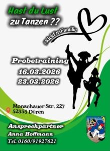 Du hast Lust zu tanzen und magst den Karneval? Dann meld Dich schnellstens bei uns und komm zu unseren Probetrainings im März.